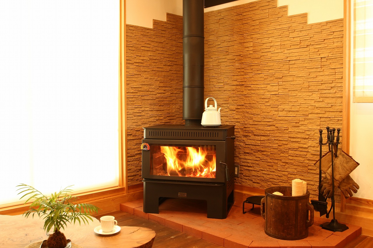 - 薪ストーブのある1階空間: 温もりある雰囲気でカフェやサロンに最適